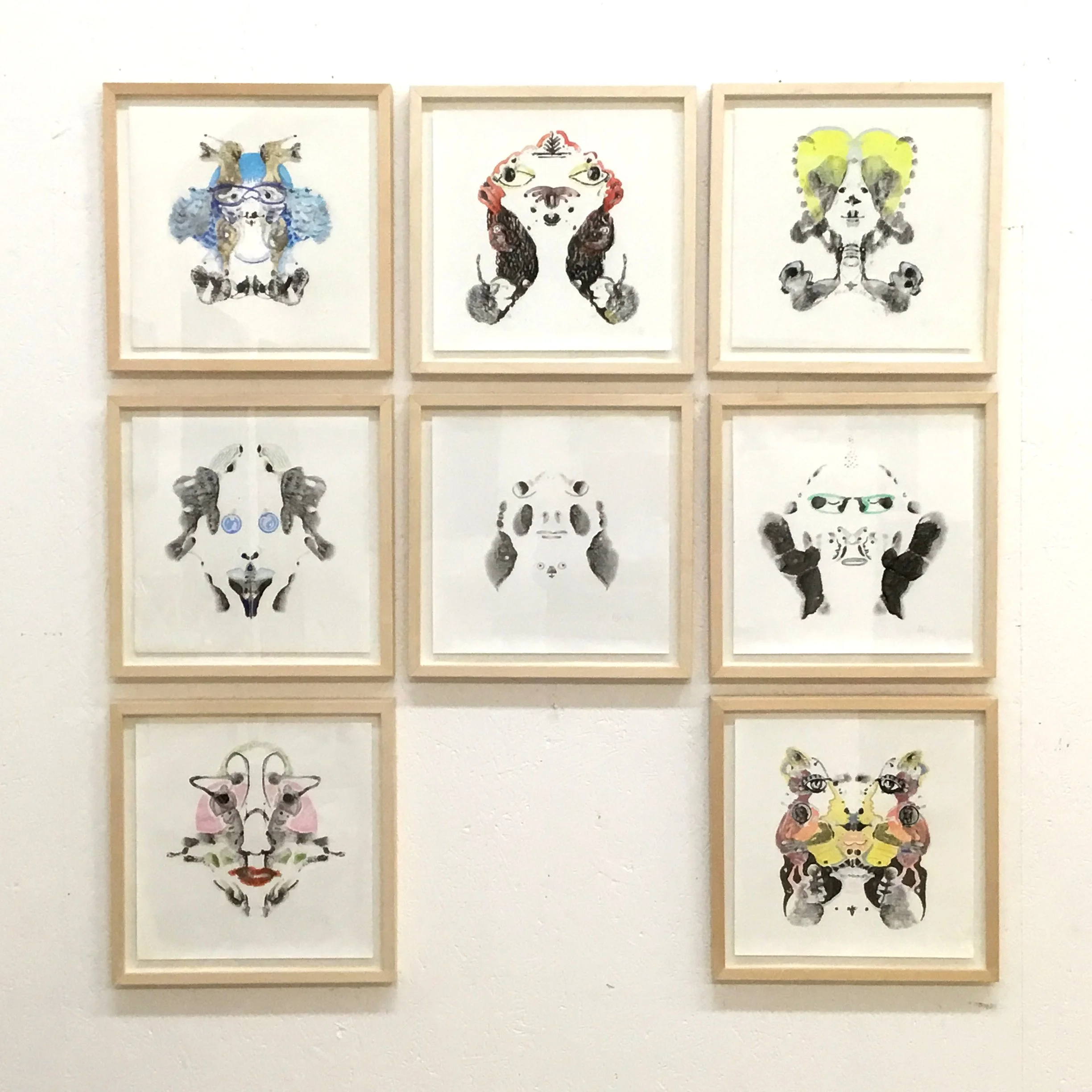 Jeg har mine fortællinger på lærred og papir med. Det mindste værk (20x20cm) har titlen “Without mask” og er fra min ny serie gouche på sort lærred.